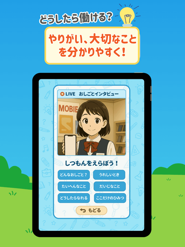未来を考える第一歩!楽しい職業インタビューアプリ