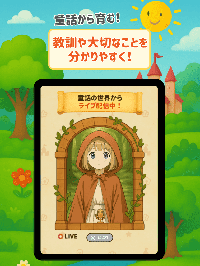 童話の世界を通して、お子様が自分自身で考え、成長する喜びを感じられるよう、『童話の世界からライブ配信』が全力でサポートします。