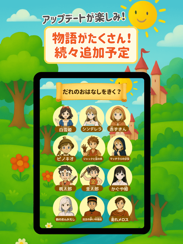 おなじみの童話キャラクターだけでなく、新しいオリジナルキャラクターも登場!毎回異なるストーリーで飽きることなく繰り返し楽しめます。