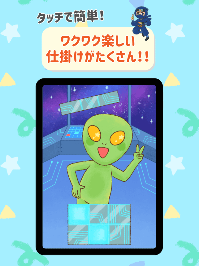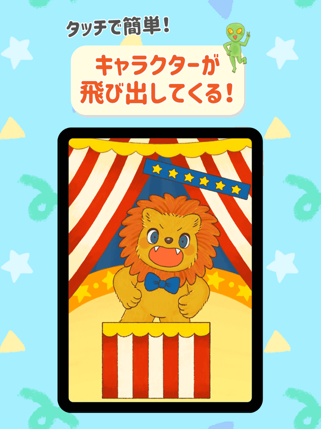遊びと学びが一体に!タッチ1つで簡単に、びっくり箱から飛び出すキャラクターたちの豊かな表情と驚きの仕掛けでみんなを笑顔にするアプリです。