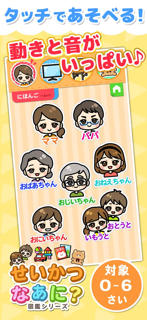 ママ、パパ、おばあちゃん、おじいちゃん、おねえちゃん、おにいちゃん、おとうと / いもうと